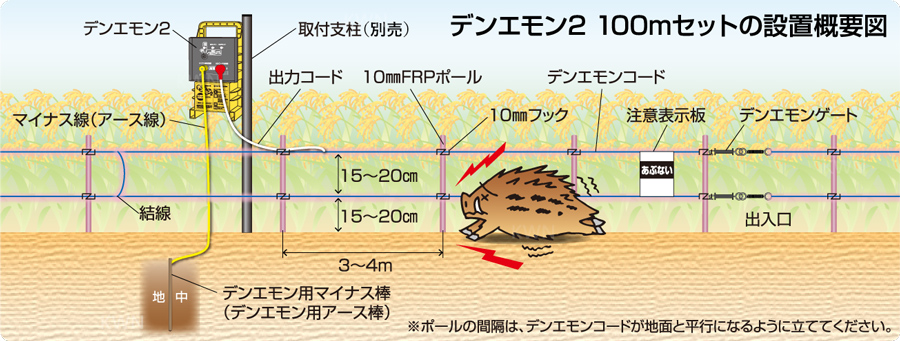 トップ > 害獣対策 > デンエモン2 100m 2段張りセット