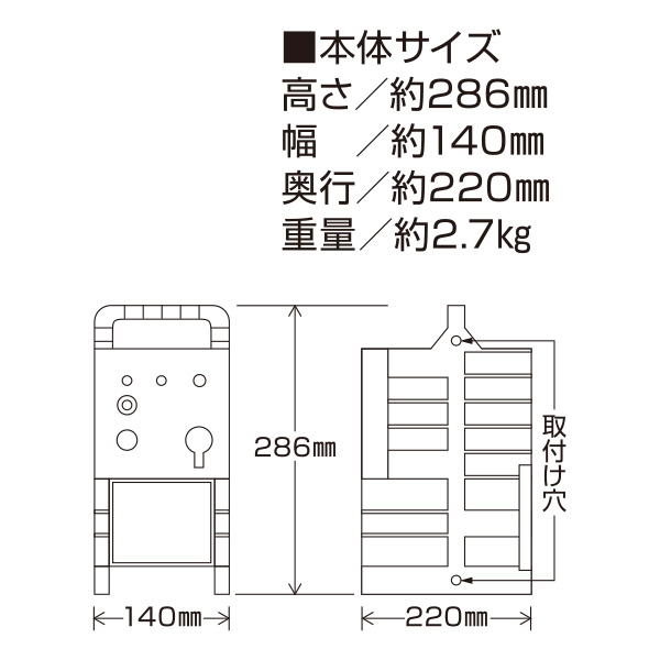 | サイズ(約) | 高さ286mm、幅140mm、奥行220mm |