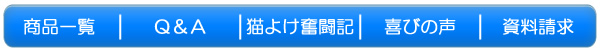 送り先のご住所・氏名・お電話番号をご入力下さい。 感想など 猫よけ奮闘記 Q&A 商品一覧